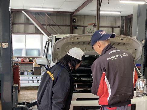 【左】母校訪問(在校生に講話)【右】整備工場(車の構造、チームワークを学ぶ)