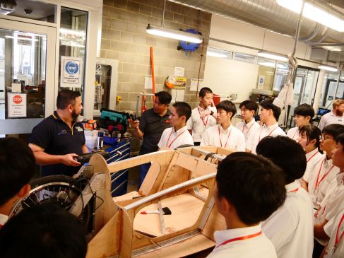 工学教育に力を入れている学校で、水素ミニカーや1人乗りEVなどを見せていただきました。