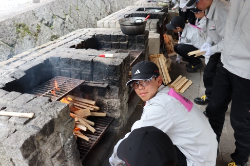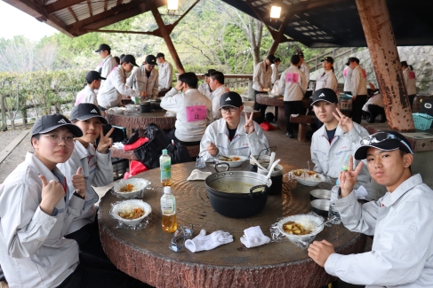 4月14日(火)・15日(水)の2日間、旭高原自然の家にて合宿研修を実施しました。訓練生が学園での3年間のスタートラインに立てるよう、礼儀・マナーの習得、ルールの遵守、仲間づくりを目的に行いました。団体規律訓練では基本動作の確認や声出し訓練を実施し、慣れない動作に戸惑いながらも全員が真剣に取り組みました。3年生はアドバイザーとして各クラスを丁寧にサポートし、指導やフォローにあたる姿が印象的でした。飯盒炊爨では班ごとに協力しておいしいカレーを完成させ、共同作業を通じて連帯感が自然に高まりました。入学から約2週間が経ち、新しい仲間との生活にも徐々に適応している様子が見られます。