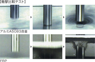 凌波性に優れたアルミハルは、波の衝撃を受けてもハル全体で受け止めて吸収します。これにより、波の衝撃値が極めて短時間で低減するため、人に伝わる衝撃や振動が少なく、快適な乗り心地が得られます。