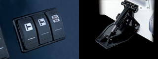 上級者でも容易ではないフラップ操作を自動化した、トヨタ独自の船体制御システムです。各種センサーがボートの姿勢を感知し、それに合わせてフラップが作動することで、ボートを常に最適な姿勢に制御すると共に、波あたりによる衝撃を和らげます。