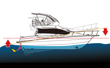 トリム角を自動制御し、最適なプレーニング姿勢を保ちます。ボートを発進させると、フラップが作動して船首の前上がりを防ぎます。また航行中、最適なプレーニング姿勢を保ちます。
