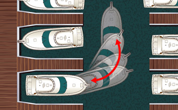 ジョイスティックを斜めに倒すと、船首の向きを変えることなくボートは倒した方向に平行移動できるため、着岸作業がスムーズに行えます。