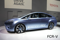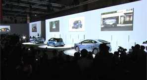 前日の29日に発表されたばかりの次世代エコカー「プリウスPHV」、注目のコンセプトカー「FT-EVIII」、「FCV-R」と今後の自動車産業を担うエコカーを発表。
