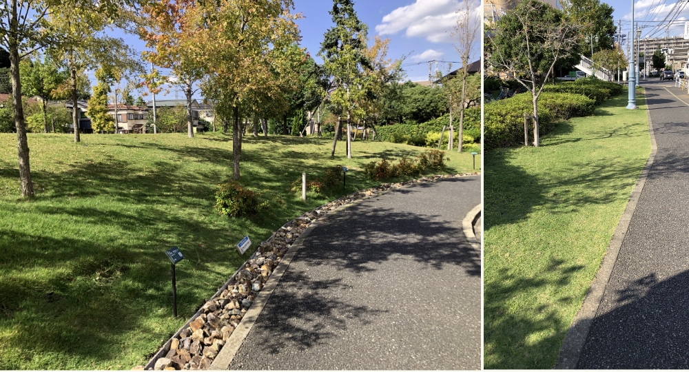 芝生広場にTM9、法面にTM-Crossを採用しました。