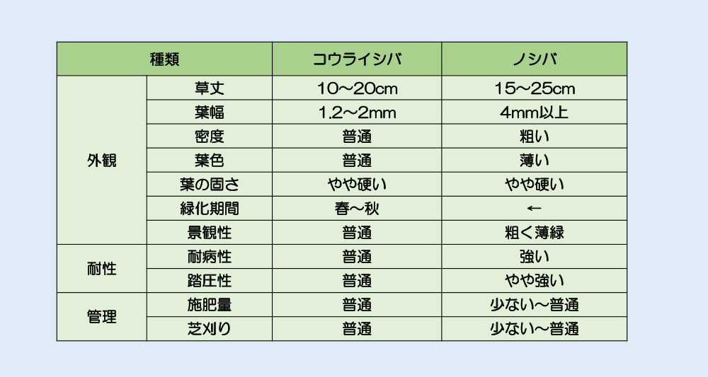 6コウライシバとノシバの違い
